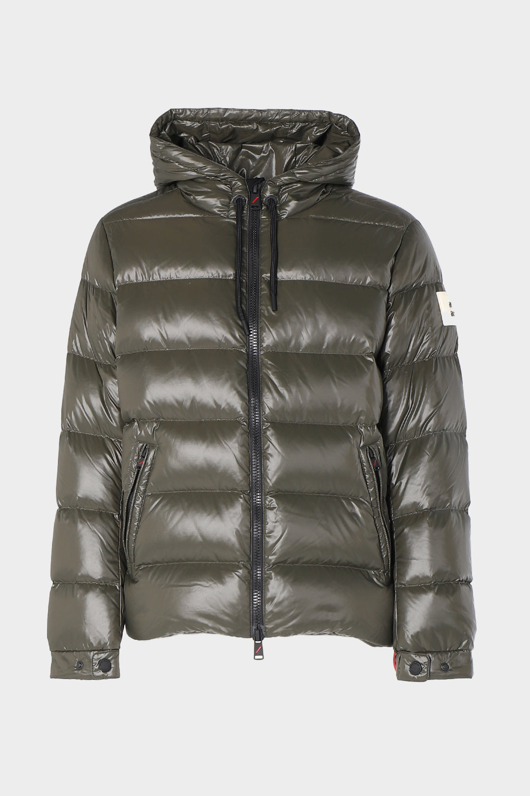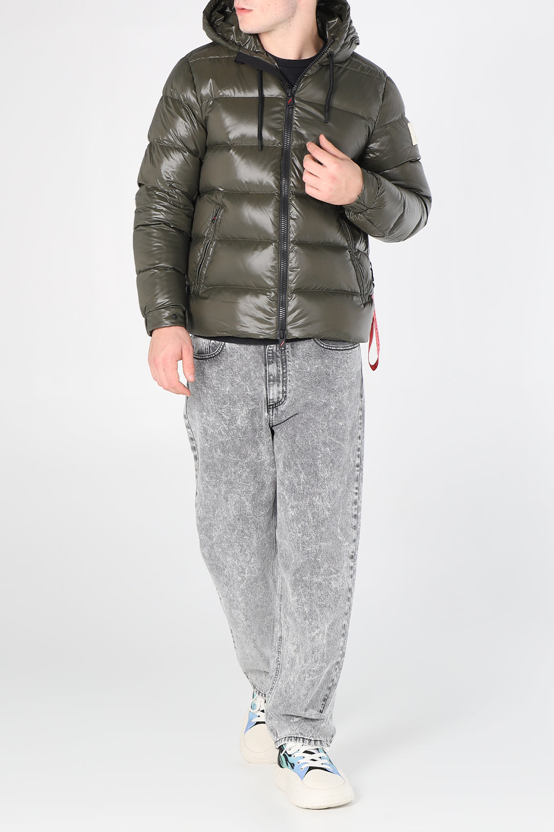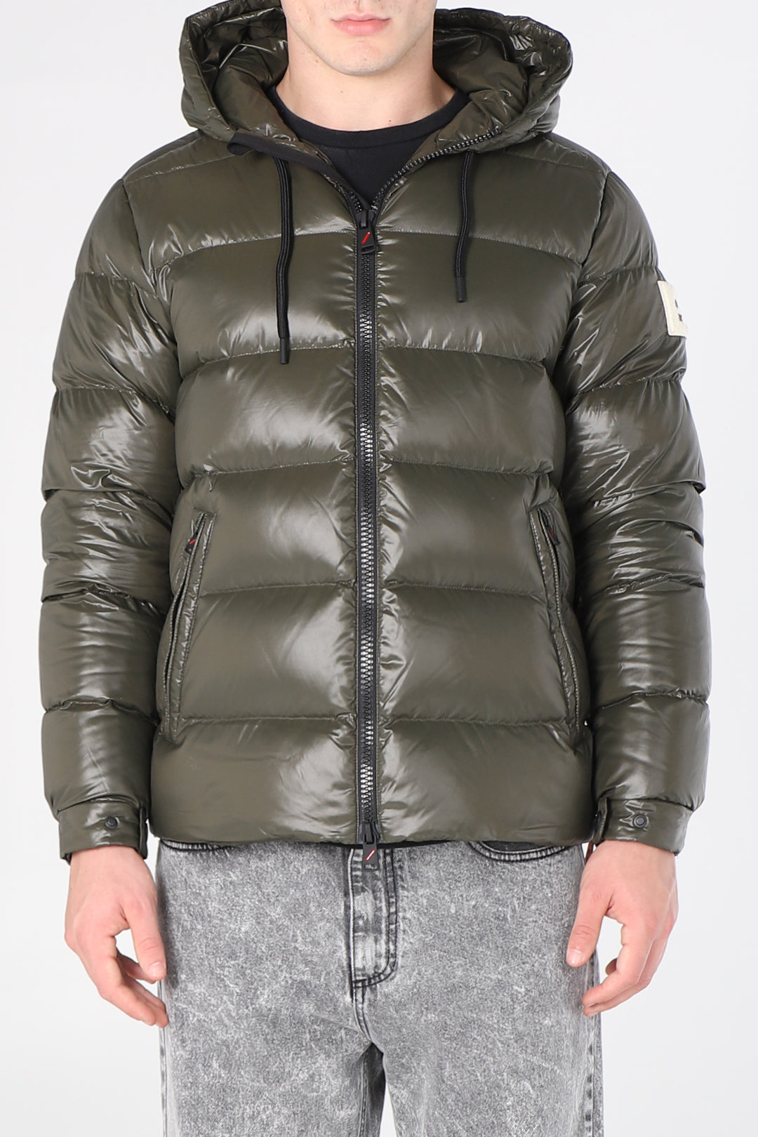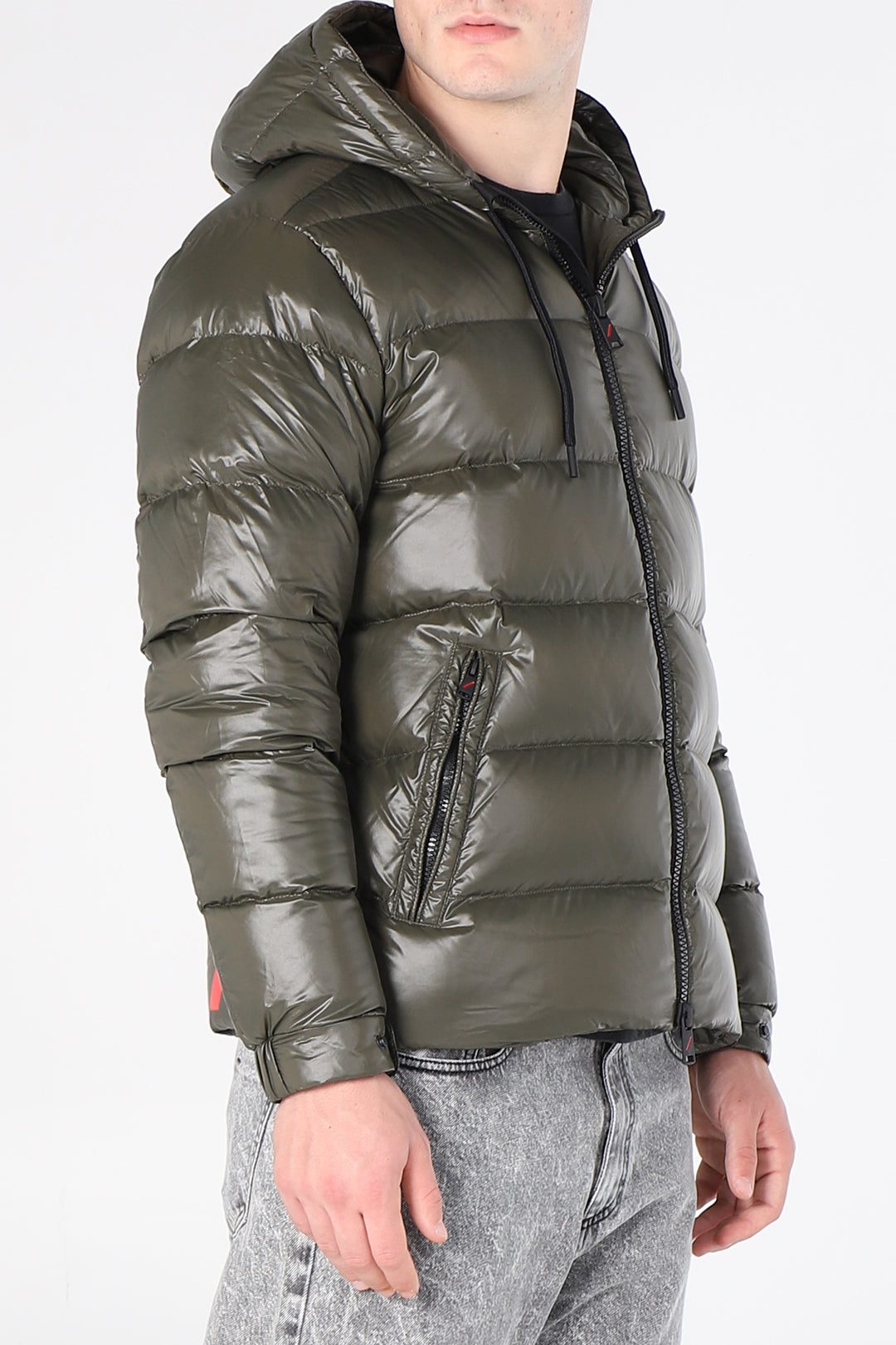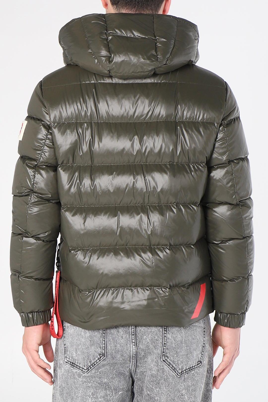 Piumino con cappuccio e lacci lucido