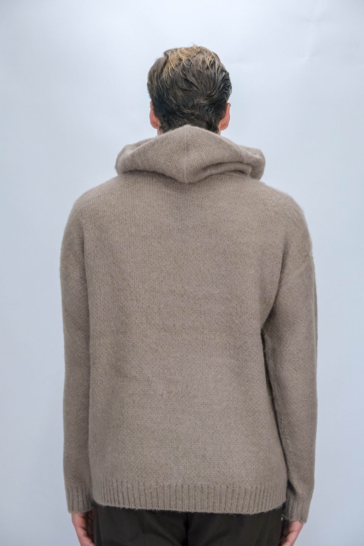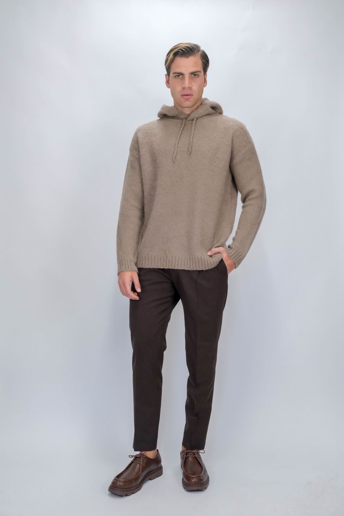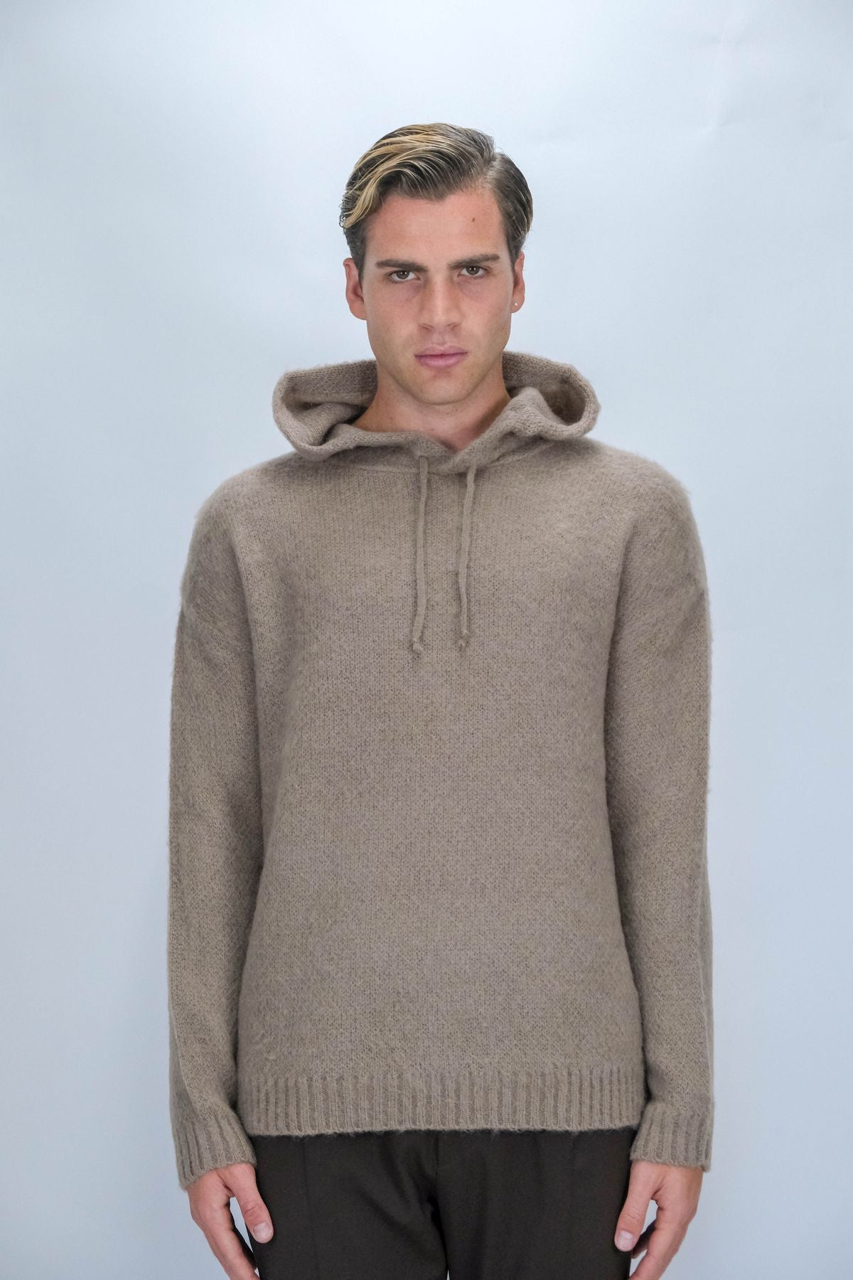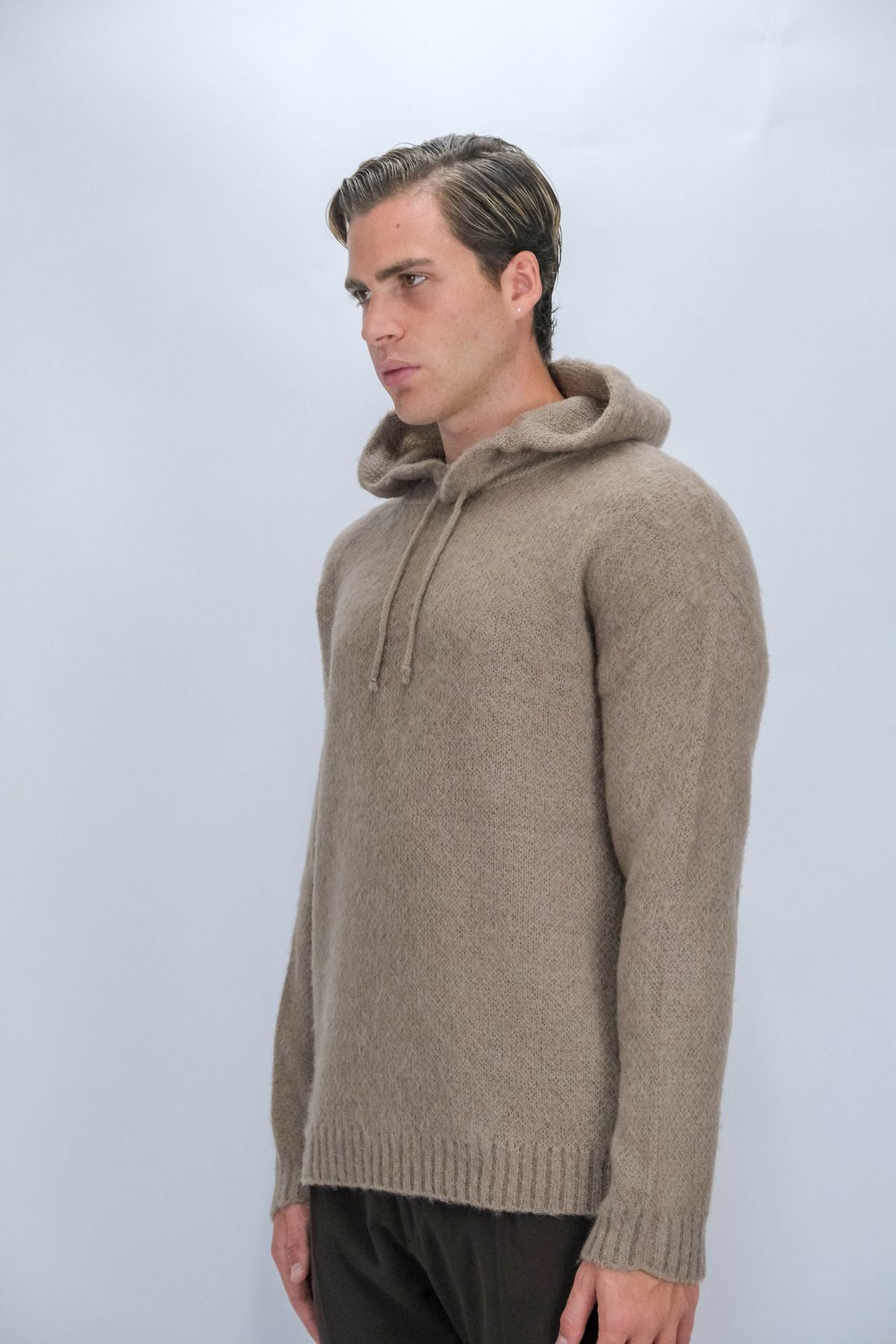 Pull con cappuccio e lacci in lana mohair