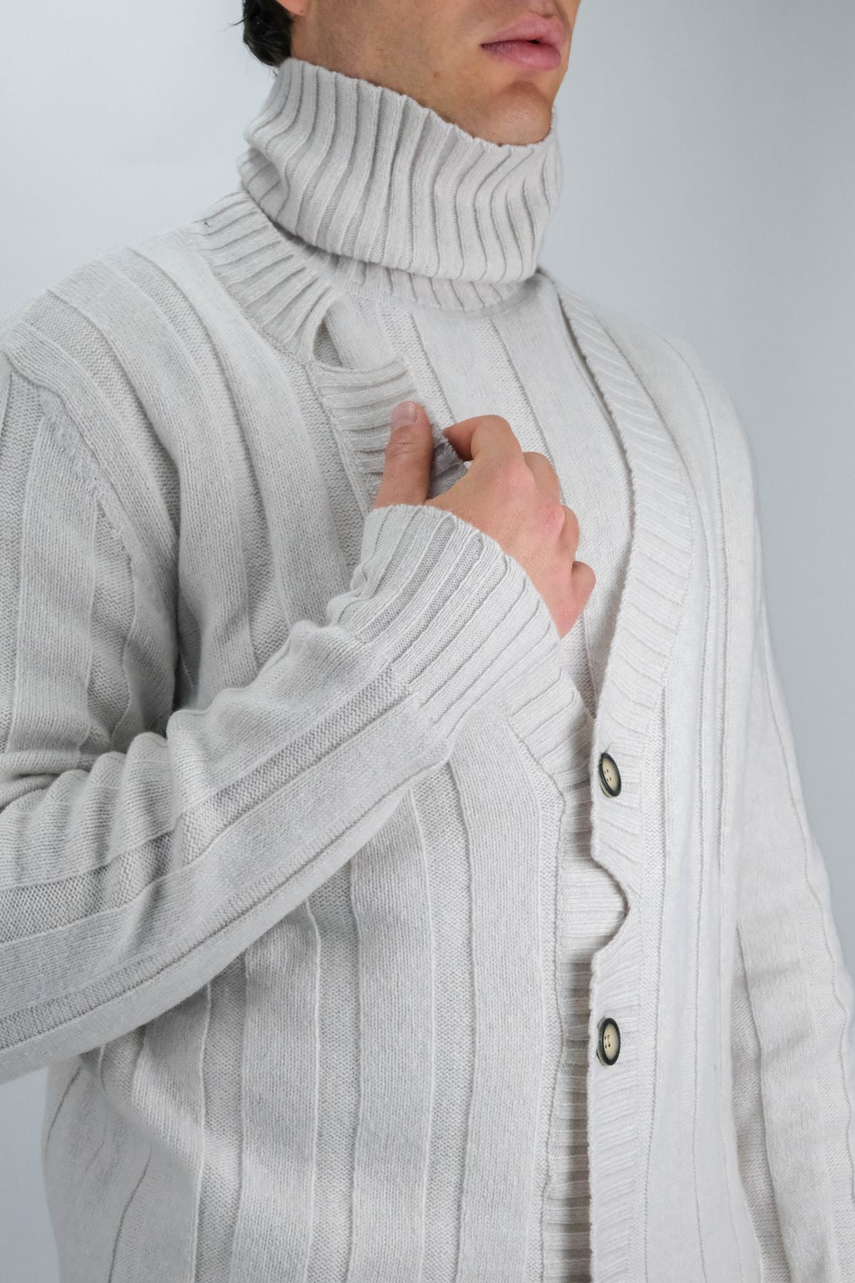 Cardigan con rotture in cashmere