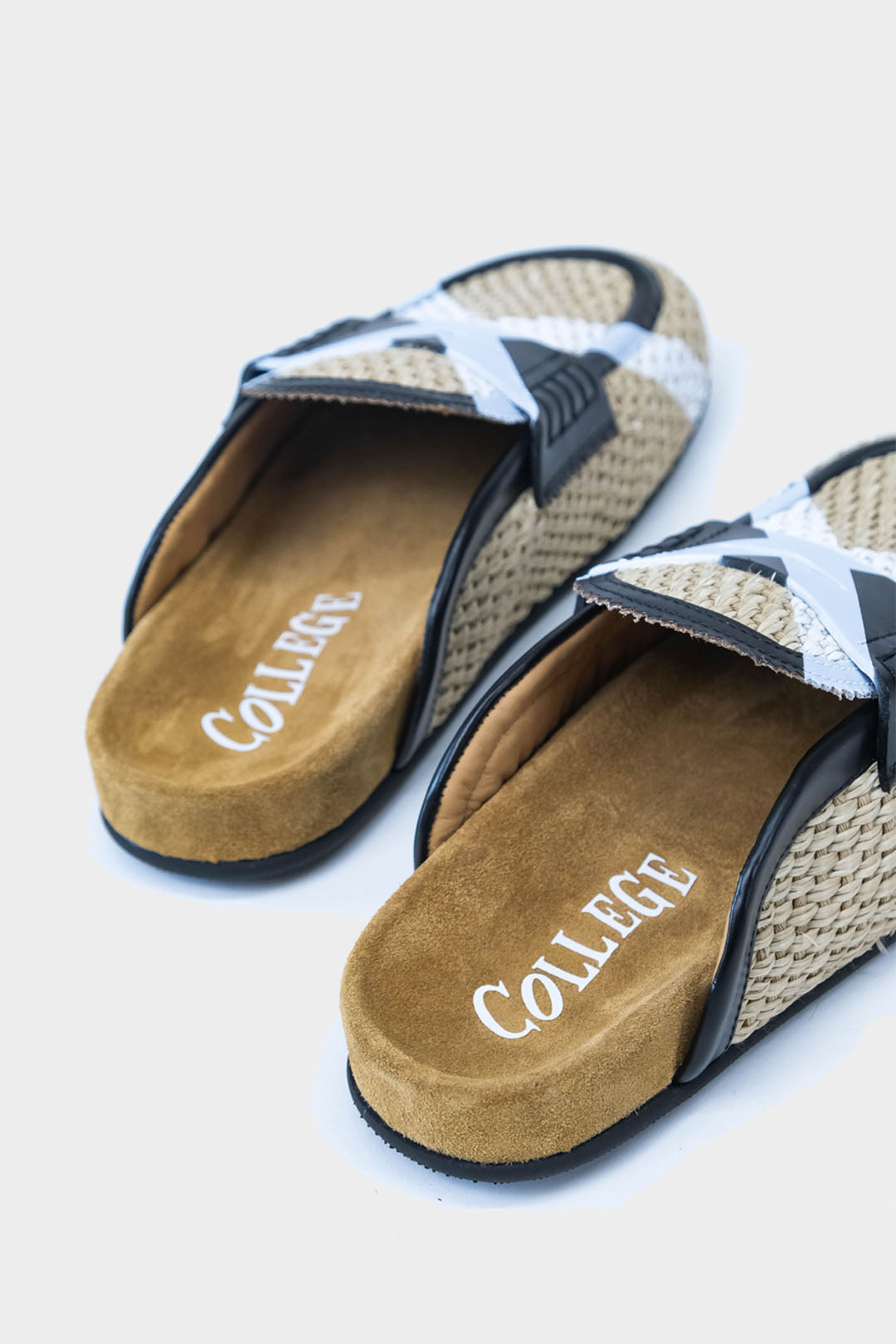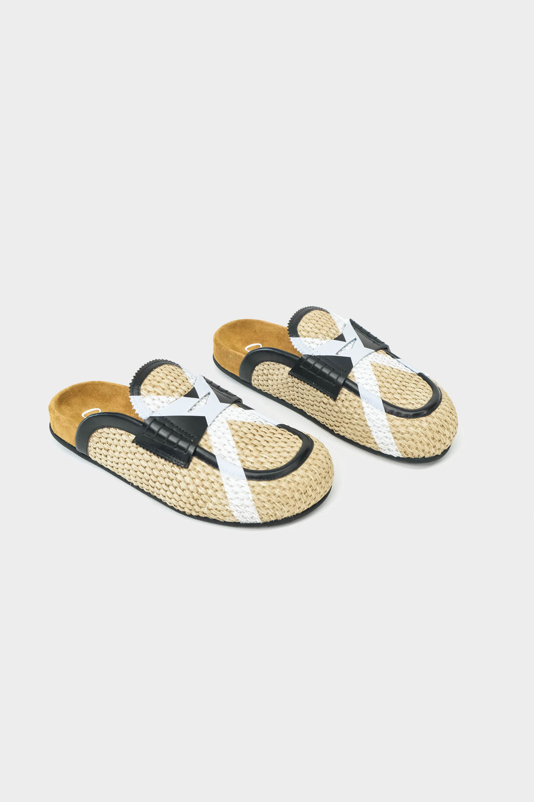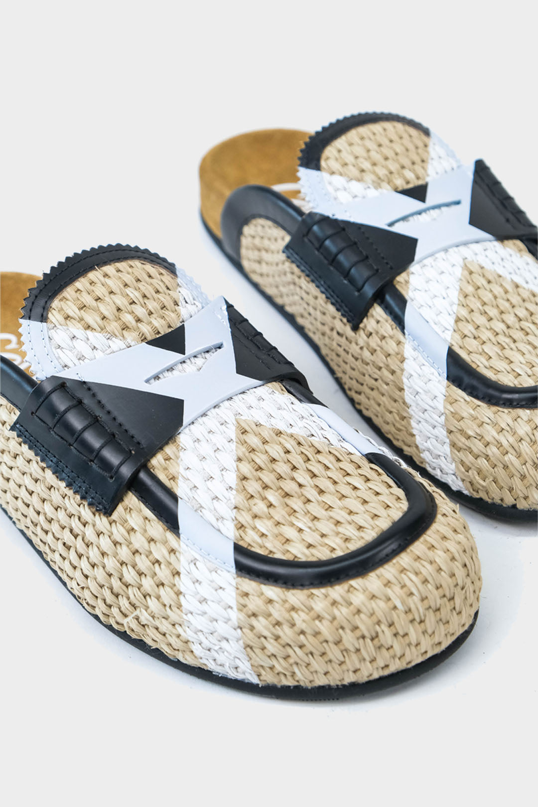 Sabot in paglia intrecciata -Stampa logo su collo piede -Composizione: paglia e pelle -Made in Italy